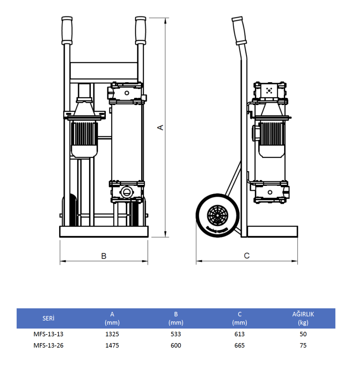 MFS-13 serisi ünitelerde, yüksek debi geçirgenlikli ve yüksek kir tutma kapasiteli filtreler kullanılır. 50-150 litre/dakika debiye